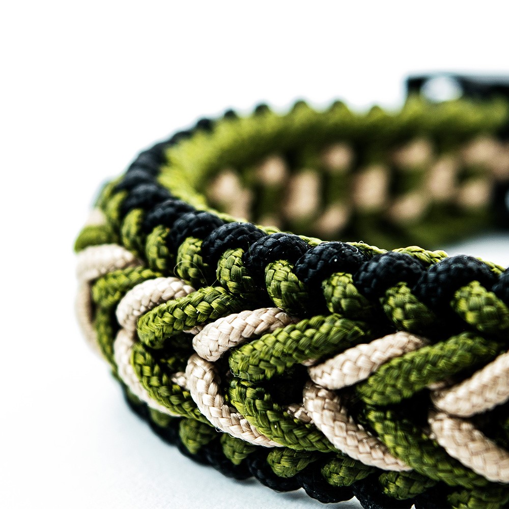 Wir präsentieren Ihnen unser exklusives Hundehalsband, das Modell ‚Wächter‘, hergestellt aus hochwertigem Paracord und Biothane. Dieses Halsband bietet die perfekte Kombination aus Widerstandsfähigkeit und Sicherheit für Ihr vierbeiniges Familienmitglied. Hergestellt aus Paracord und Biothane ist dieses Halsband außergewöhnlich robust und widerstandsfähig. Das Paracord sorgt für außergewöhnliche Festigkeit, während das Biothane dem Halsband Flexibilität und Komfort verleiht. Diese sorgfältig ausgewählte Materialzusammensetzung garantiert eine langanhaltende Nutzung und bietet höchste Sicherheitsstandards für Ihren Hund. Die Kombination von Paracord und Biothane verleiht dem Halsband nicht nur Stil, sondern macht es auch für verschiedene Aktivitäten geeignet – sei es ein Spaziergang in städtischen Umgebungen, Spielen im Park oder Outdoor-Unternehmungen. Unser Hundehalsband, Modell ‚Wächter‘, bietet eine Auswahl an Stilen und Farben, darunter Schwarz, Grün und Mokka, die perfekt zum individuellen Stil jedes Hundes passen. Alle Designs wurden sorgfältig entwickelt, um Eleganz und Praktikabilität zu kombinieren. Mit seinen hochwertigen Materialien, außergewöhnlicher Haltbarkeit und modernem Design ist unser Hundehalsband aus Paracord und Biothane, Modell ‚Wächter‘, die Wahl, die den Bedürfnissen von Ihnen und Ihrem treuen Begleiter gerecht wird. Genießen Sie den Komfort und den Stil, den Ihnen unser Halsband bietet, das Sicherheit und modernes Design für das beste Erlebnis für Sie und Ihren Hund vereint. Das Halsband ist in verschiedenen Größen erhältlich und kann individuell angepasst werden, um sicherzustellen, dass es perfekt passt und höchsten Tragekomfort bietet.