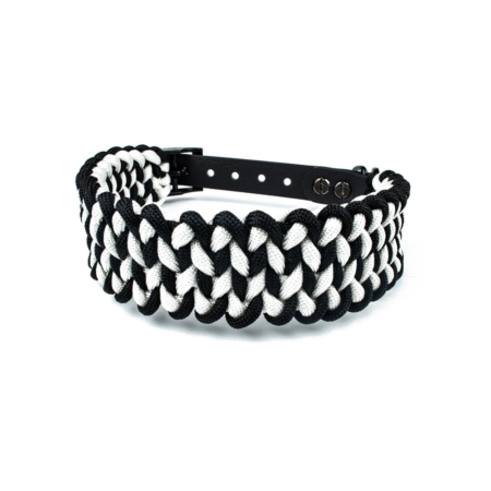 • Hundehalsband Tierluxe Modell „Historisch“ weiß-schwarz Handgemacht Paracord Biothane